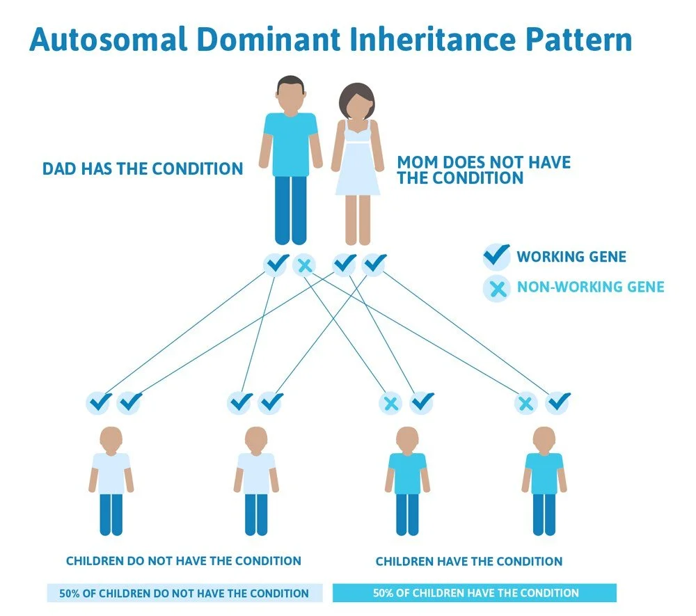 Children of people with a DYNC1H1 variant have a fifty-fifty chance of inheriting the faulty gene.